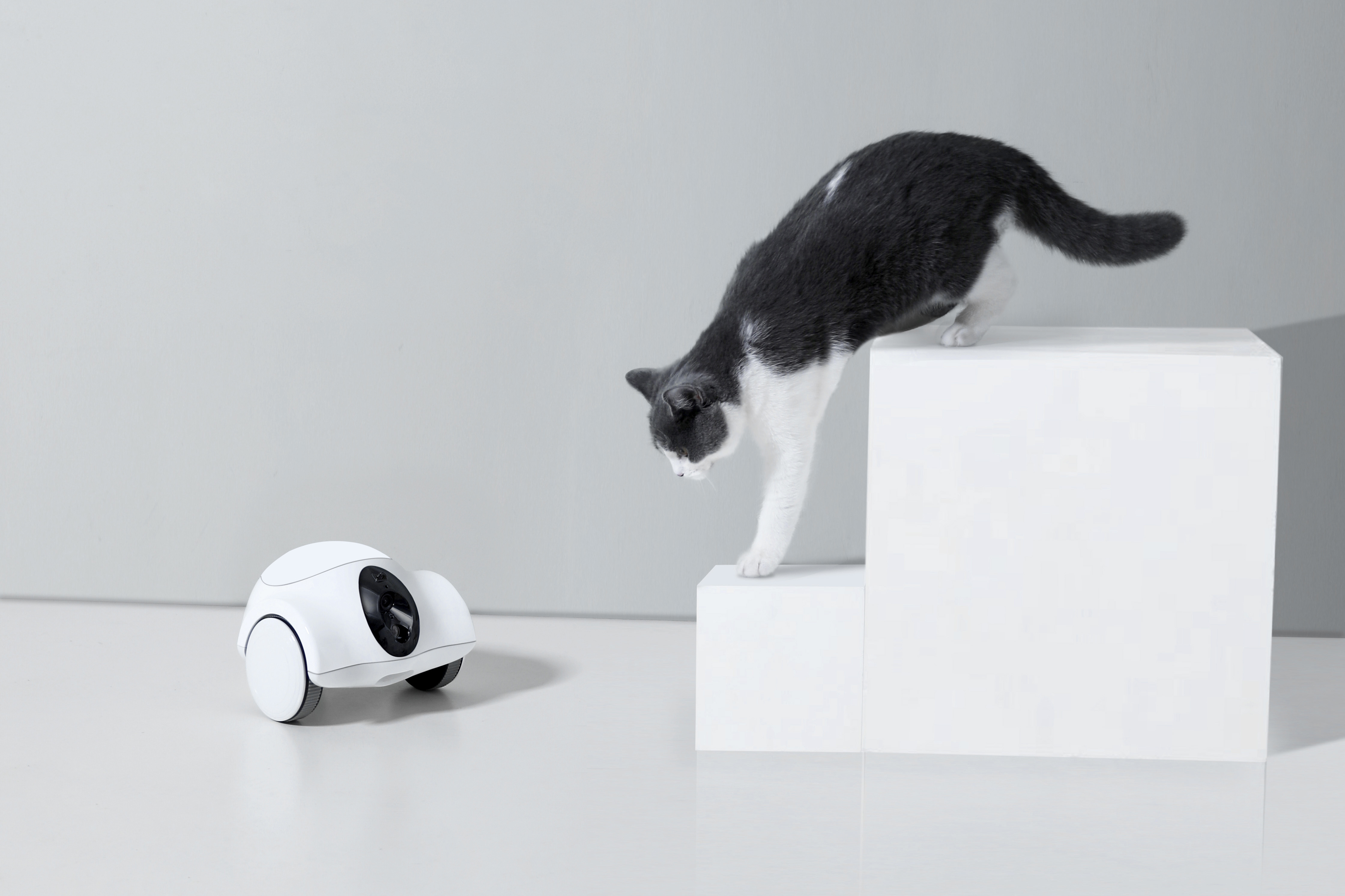 为了满足上班族随时随地陪伴家中宠物的需求,这款伴宠机器人除了可以通过视频, 双向语音,与宠物及互动。甚至实现了零食,猫粮狗粮的远程投喂,让主人们上班 时都可以看到宠物在家中的一举一动,避免宠物在家“焦虑”或者“拆家”的烦恼。