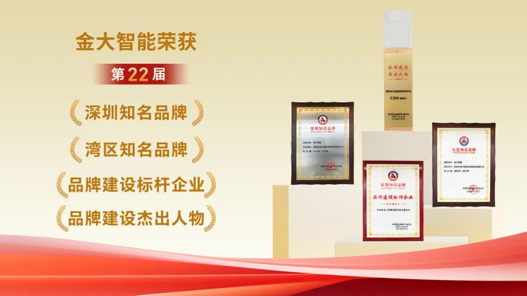 喜讯 | 金大智能再获“深圳知名品牌”殊荣,同时被授予“湾区知名品牌”等多项荣誉!