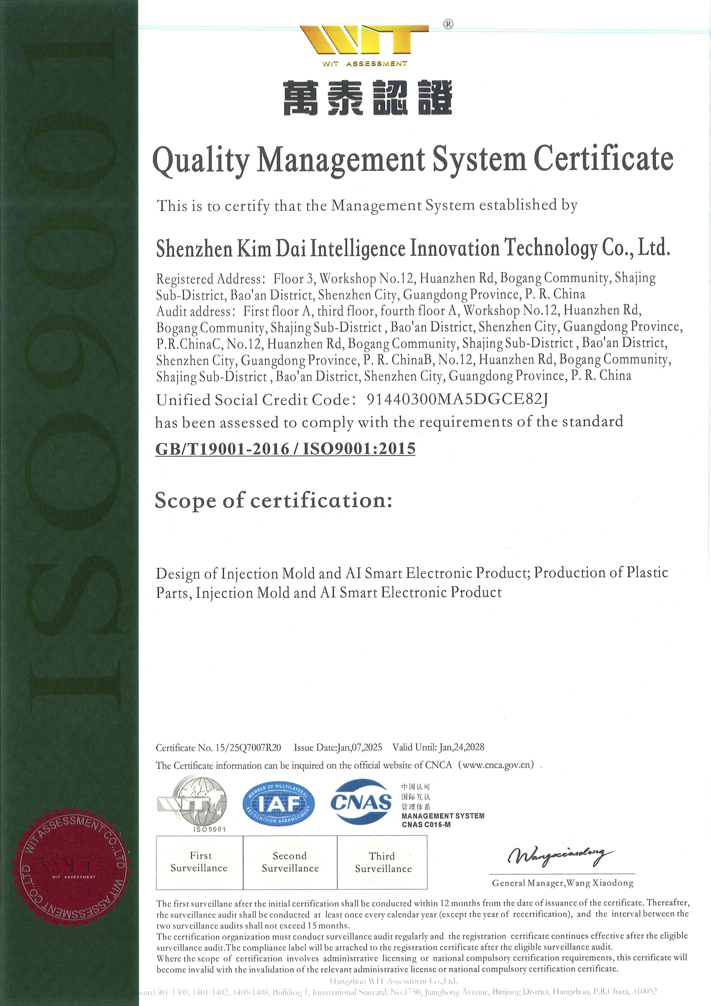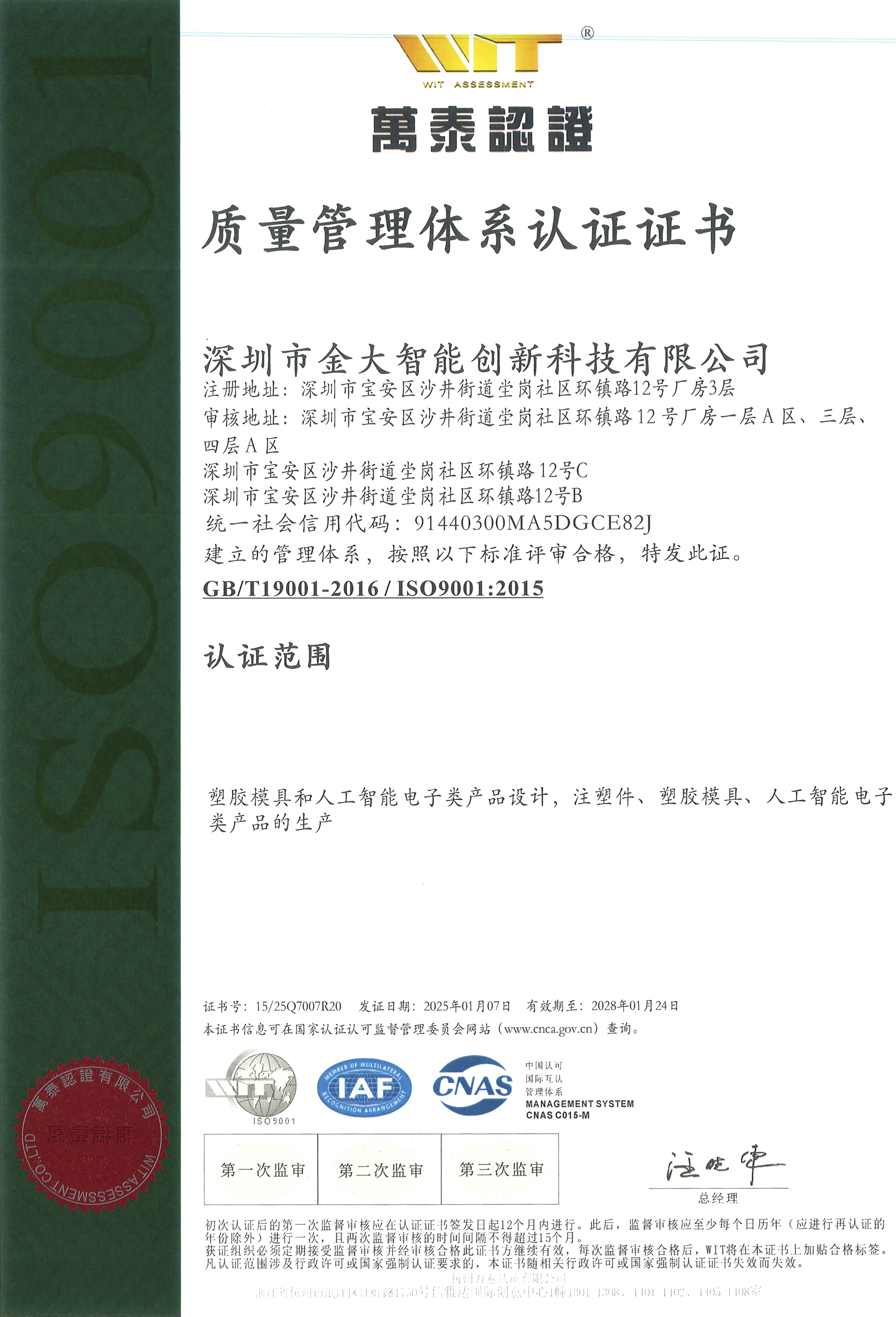 作为一站式AI产品ODM/OEM服务商,我们构建了覆盖设计、生产、测试全流程的智能质量管理体系,通过ISO 9001(质量管理体系认证)、ISO 13485(医疗器械管理体系认证)、ISO 14001 (环境管理体系认证)及IATF 16949(车规级认证)等认证,确保产品符合国际标准。
